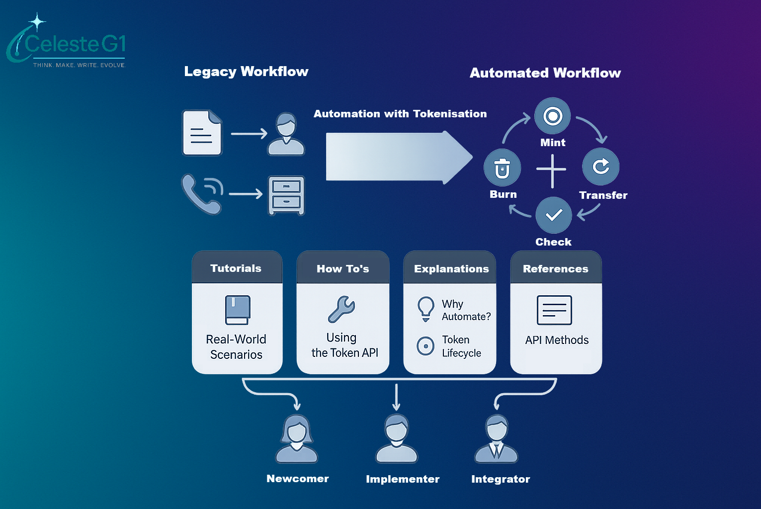 - Explanation (sub-level): How the tokenisation workflow works (mint, burn, read, update).